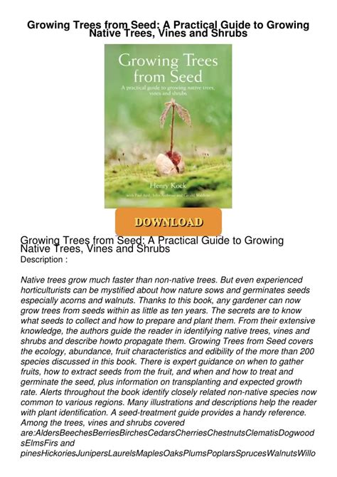 Growing Trees from Seed: A Practical Guide to Growing Native Trees Kindle Editon By Click Button. Growing Trees from Seed: A Practical Guide to Growing Native Trees it’s easy to recommend a new book category such as Novel, journal, comic, magazin, ect. You see it and you just know that the designer is also an author and understands the challenges involved with having a good book. You can easy klick for detailing book and you can read it online, even you can download it